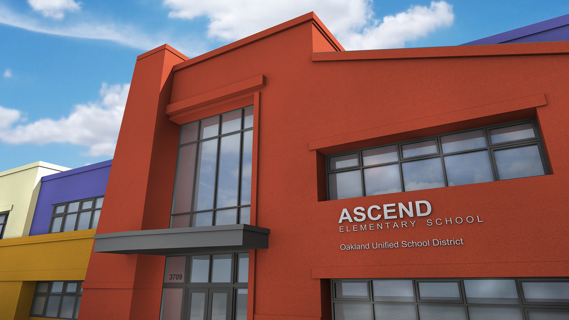 Due to its location adjacent to BART train tracks, noise reduction was critical in the design of this school.  Classrooms, the multi-purpose room, hallways, and the playground area were all designed to reduce external noise and use internal noise as a buffer.  A sound wall was placed along the entire length of the outdoor play area.