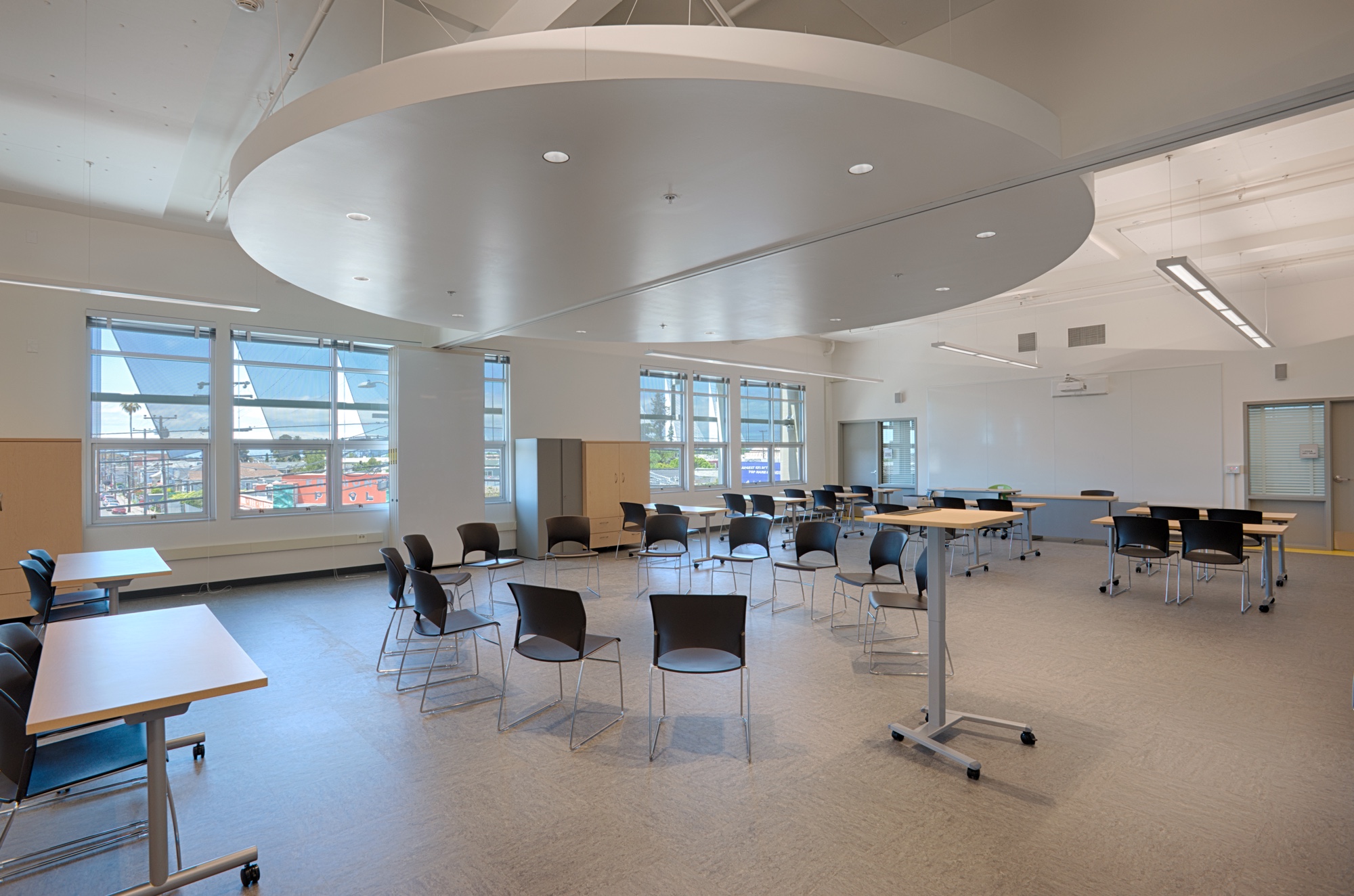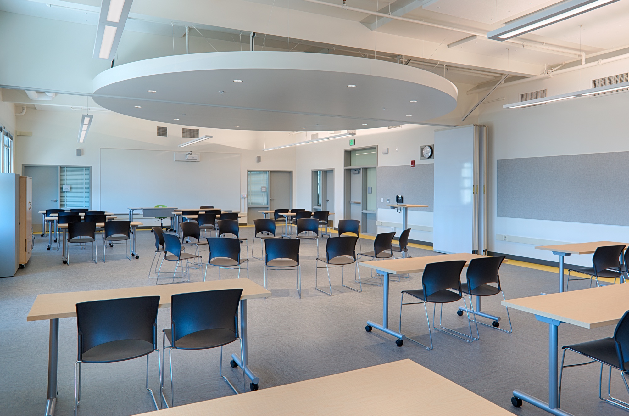 Modernization of Oakland High School campus started with the new science building that houses 8 classrooms, 2 large computer labs and an open entry lobby that encourages student collaboration. Design and construction of the new building was the first in a series of upgrades that included modernization of the main school building, upgrades to the shop building and conversion of old classrooms to a new Health and Wellness Center. The new classroom building was designed to exceed CHPS Standards.