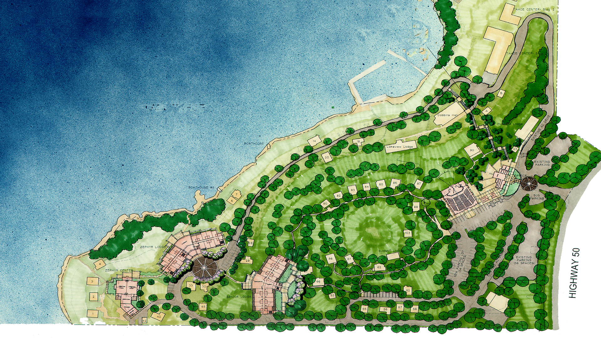 LCA Architects worked with the Tahoe Regional Planning Agency (T.R.P.A.) to sensitively site a new 31,546 square foot conference center and 24,000 square foot senior housing facility along the Lake.